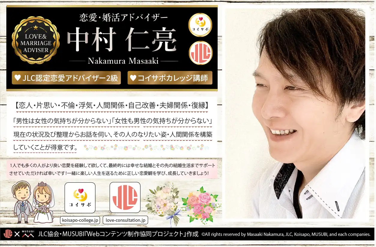 【JLC協会認定恋愛アドバイザー・中村仁亮氏】