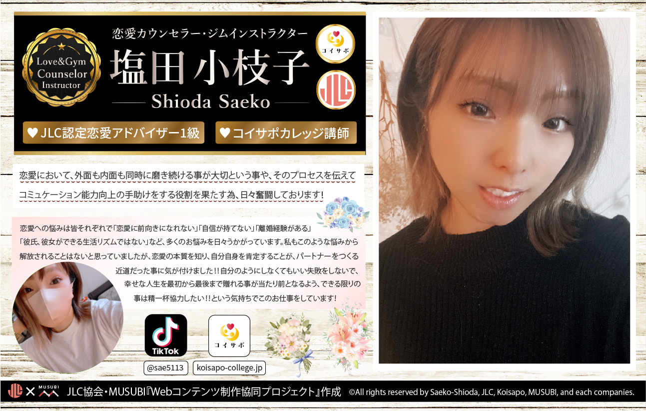 【JLC協会認定恋愛アドバイザー1級・塩田小枝子氏】