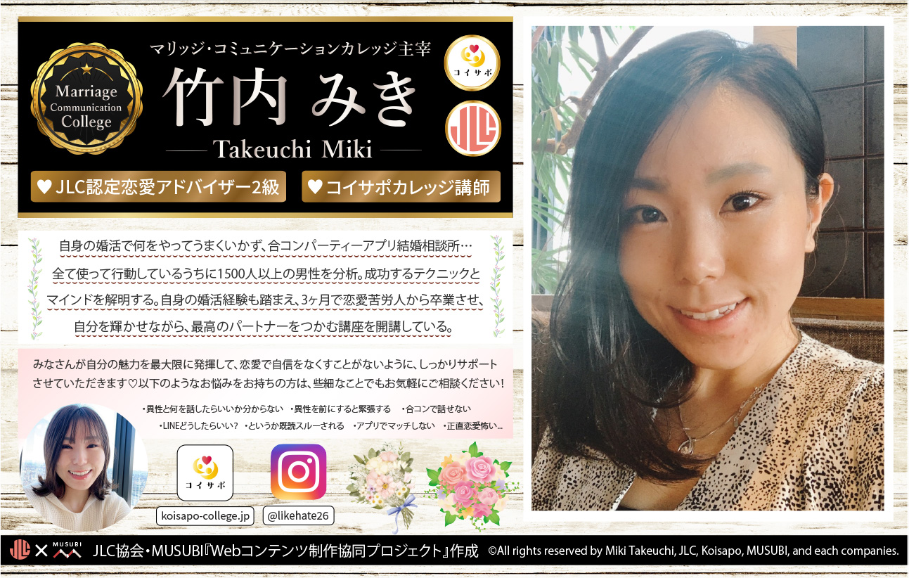 【JLC協会認定恋愛アドバイザー・竹内みき氏】