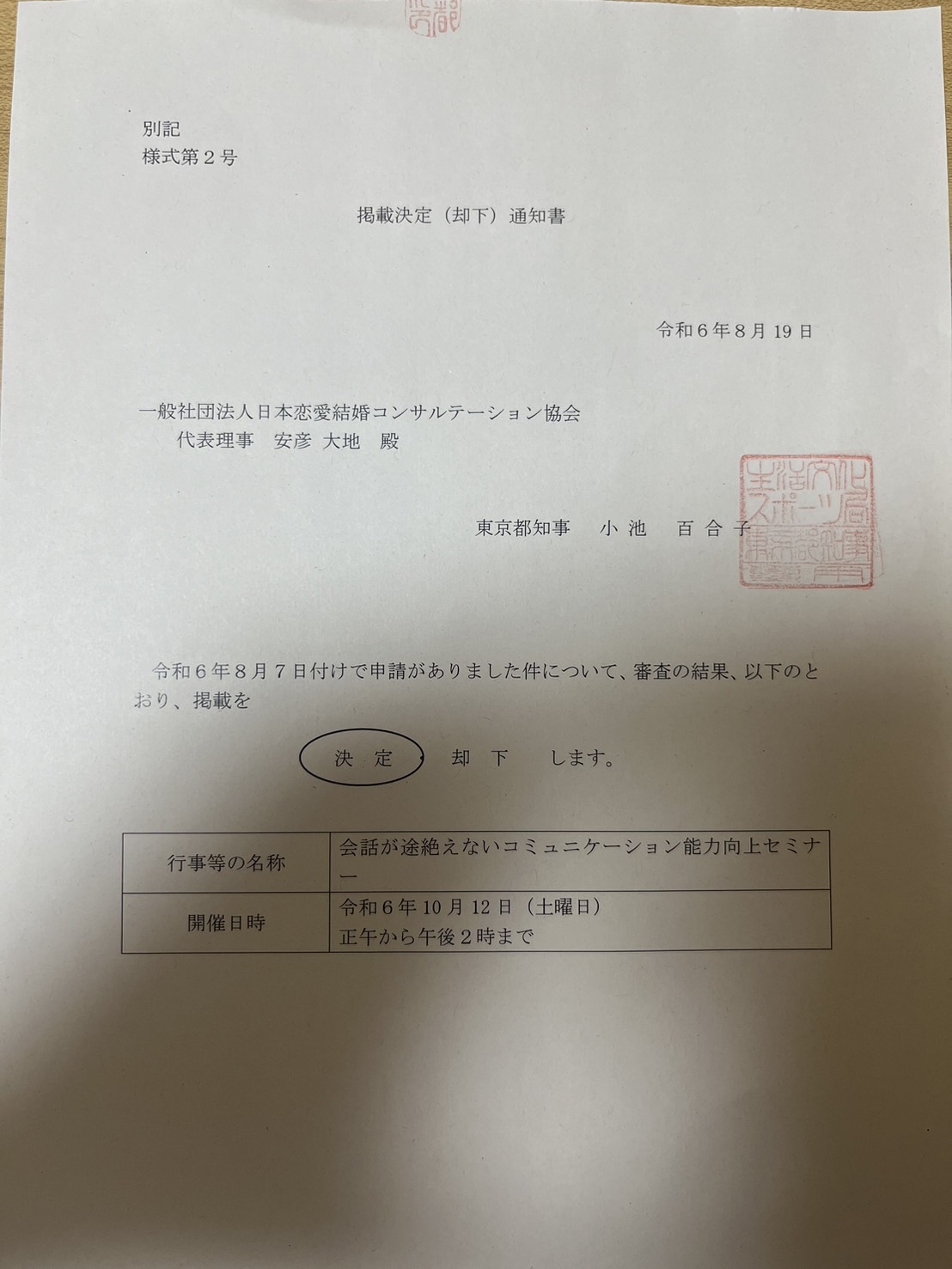 代表理事の安彦が直々に東京都で婚活に取り組んでいる方に向けてセミナーを行う。